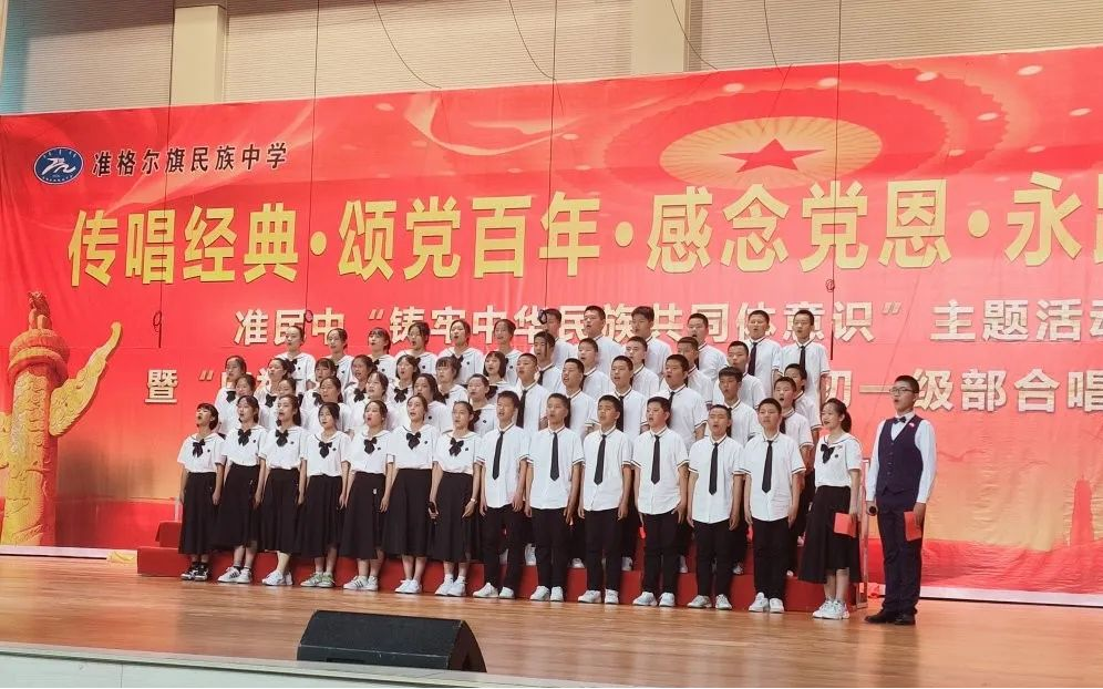 2021年5月8日,准格尔旗民族中学开展“铸牢中华民族共同体意识”主题活动暨“庆祝中国共产党成立100周年”初一年级合唱比赛。