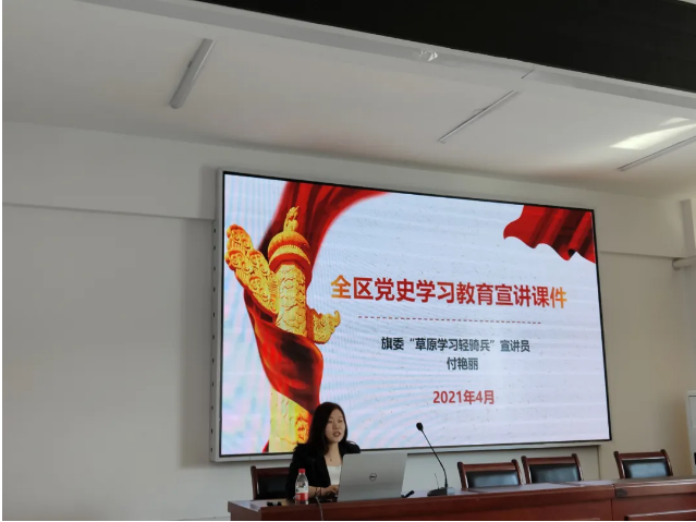 为推动党史学习教育深入开展,4月19日下午,团旗委邀请旗委“草原轻骑兵”宣讲员付艳丽老师到群团等单位开展党史专题宣讲。团旗委、旗总工会、旗妇联、旗科协、旗工商联、旗残联、旗红十字会和旗退役军人事务局八家单位的40余名干部职工参加了宣讲。